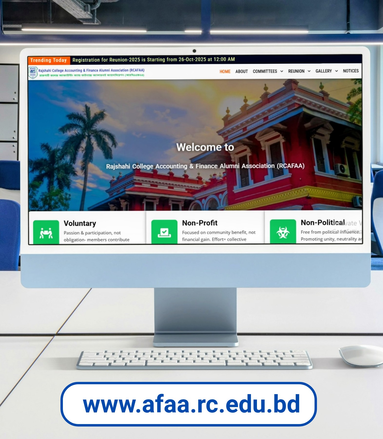 রাজশাহী কলেজ হিসাববিজ্ঞান ও ফাইন্যান্স অ্যালামনাই এসোসিয়েশন (RCAFAA)-এর অফিসিয়াল ওয়েবসাইট এখন সম্পূর্ণ প্রস্তুত 🌐